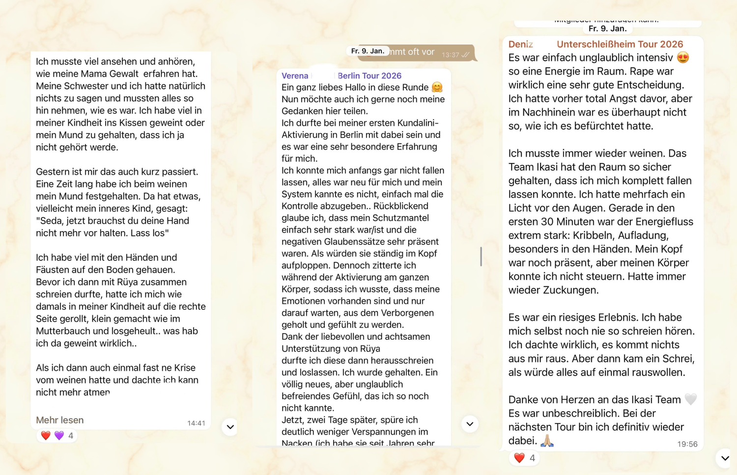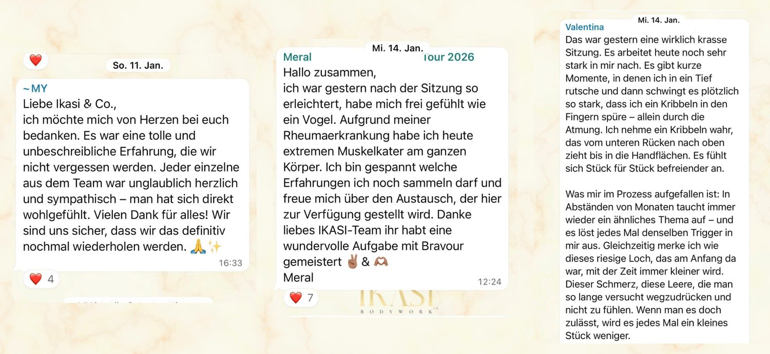 "Nach über 10 Jahren Psychotherapie war es IKASI, die meine Ketten gesprengt hat. Dort habe ich endlich erfahren, was echte Befreiung bedeutet und heute darf ich genau diese Kraft an andere weitergeben”