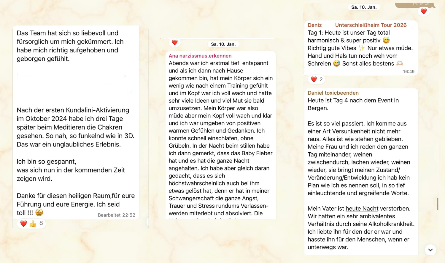 Jeder Körper reagiert unterschiedlich. Manche erleben direkt intensive Prozesse, andere spüren zunächst subtile Veränderung. Auch, wenn es "ruhig" wirkt, arbeitet dein System und die Antwort kann Wochen oder Monate später erfolgen.